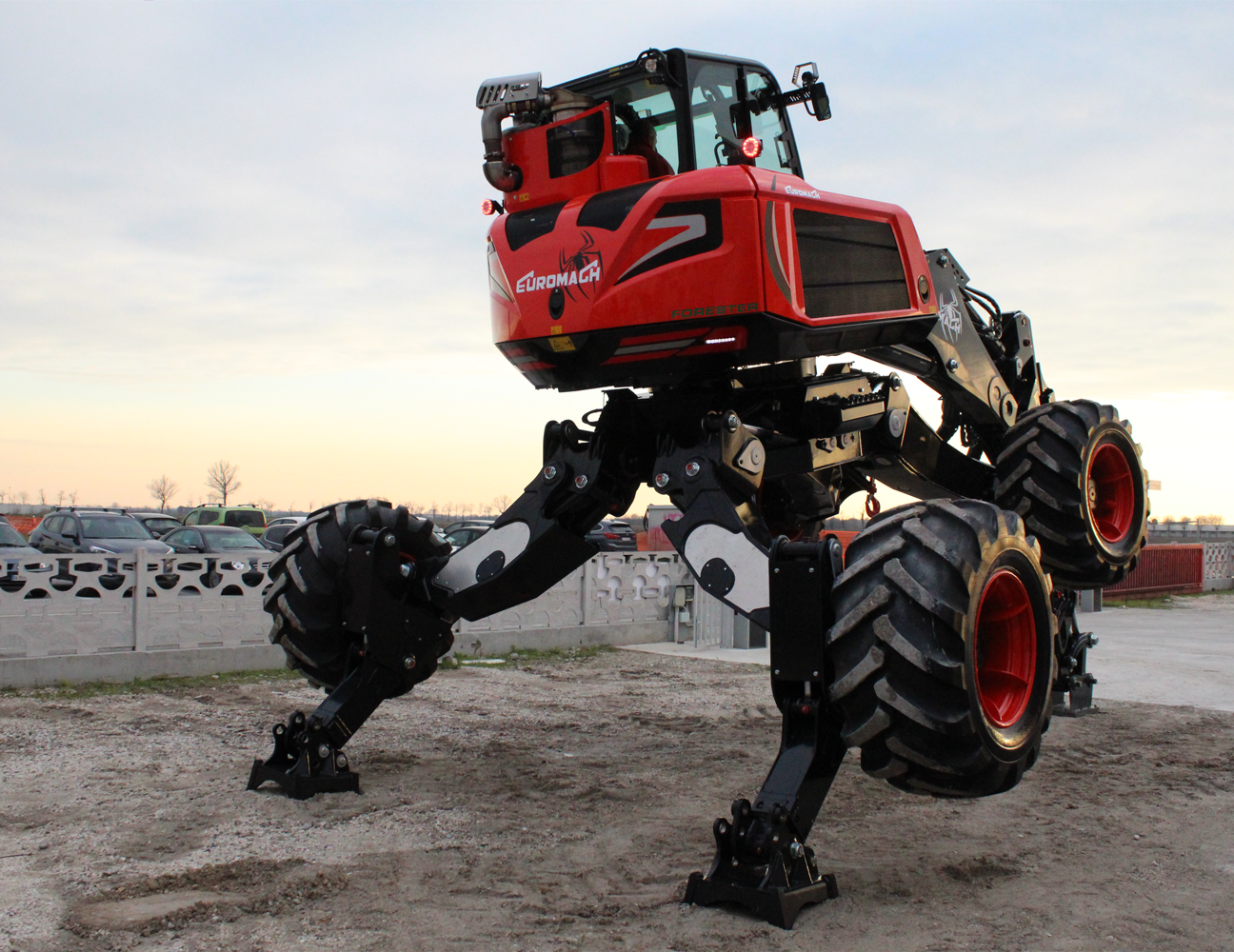 R1255 Big Foot è una macchina assolutamente innovativa, caratterizzata da un’ottima visibilità e compattezza, da uno sbraccio di lavoro impressionante ed un ottimo rapporto peso/potenza. Il motore John Deere da 170Hp ha una turbina a geometria variabile, quindi ha una erogazione di coppia molto rapida e con consumi piuttosto contenuti in rapporto alla potenza. Il motore è dotato di filtro antiparticolato. L’idraulica montata permette l’uso anche con decespugliatori forestali e processori di grosse dimensioni. Il peso e le dimensioni permettono l’uso dell’escavatore anche in ambienti molto ostili, quali torrenti, fossi e zone paludose. Il telaio è simmetrico, con 4 ruote tutte sterzanti tutte della stessa dimensione e si chiude all’interno di 2,1 m rendendo questo modello adatto anche ad affrontare spostamenti in stradine e sentieri molto stretti. R1253 Big Foot ha un impianto idraulico molto performante, con una pompa separata per la trazione in circuito chiuso. La rotazione della macchina è effettuata con motore Poclain senza ingranaggi, il che garantisce una controllabilità è un rendimento senza uguali.